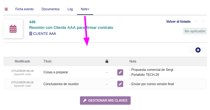 - Algunos de los anteriores incluso no tienen la opción nativa de Dolibarr de agregar una "Nota Privada" y una "Nota pública", como por ejemplo los eventos de la Agenda: